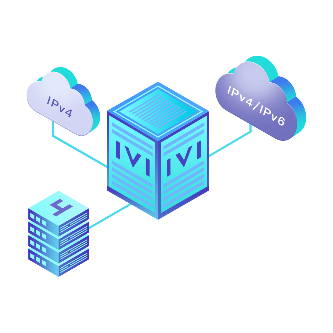 對正在進行IPv6整體升級規(guī)劃的運營商,應(yīng)用IPv6升級方案2.5,通過IVI無狀態(tài)翻譯技術(shù)和純IPv6接入網(wǎng)絡(luò),為雙??蛻舳撕碗p棧服務(wù)器提供連通服務(wù)。